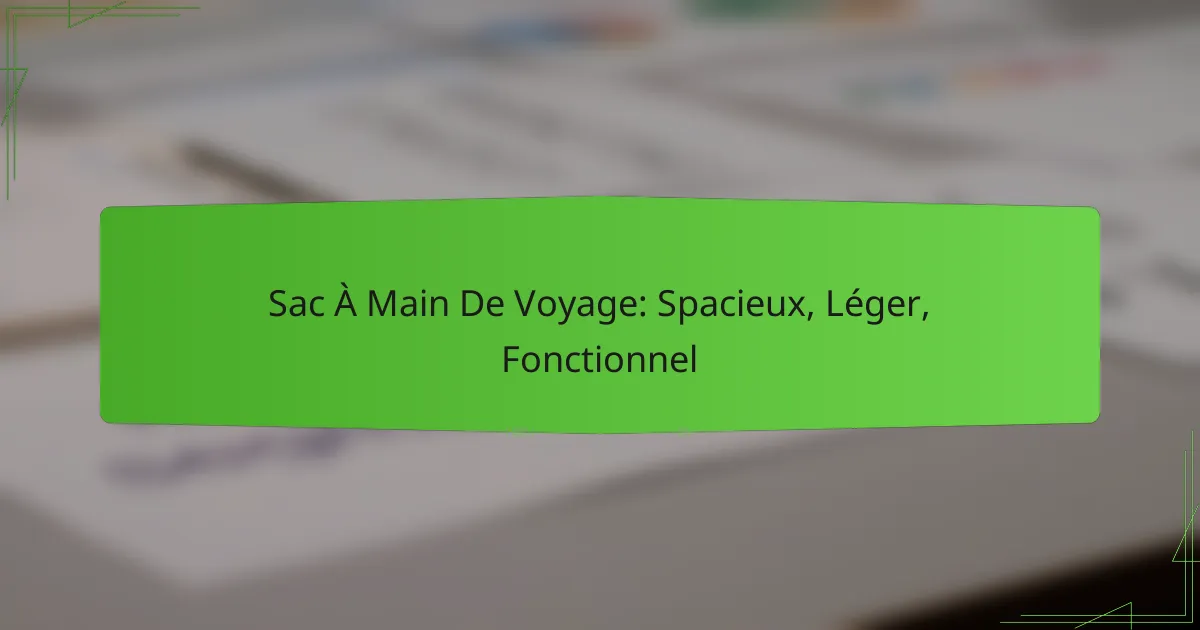 Pour choisir un sac à main de voyage spacieux, il est crucial de considérer la capacité de rangement, le poids, les matériaux, ainsi que les fonctionnalités pratiques. Un bon sac doit offrir suffisamment d’espace tout en restant léger et facile à transporter.